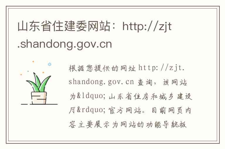 根据您提供的网址 http://zjt.shandong.gov.cn 查询,该网站为“山东省住房和城乡建设厅”官方网站。目前网页内容主要展示为网站的功能导航板块,具体说明如下:
