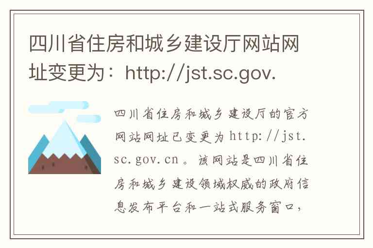 四川省住房和城乡建设厅的官方网站网址已变更为 http://jst.sc.gov.cn 。该网站是四川省住房和城乡建设领域权威的政府信息发布平台和一站式服务窗口,其内容和服务丰富,主要涵盖以下几个方面: