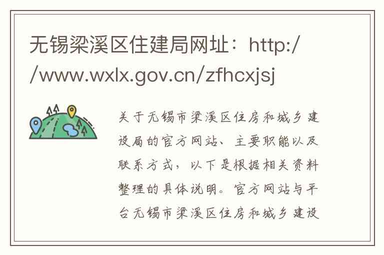 关于无锡市梁溪区住房和城乡建设局的官方网站、主要职能以及联系方式,以下是根据相关资料整理的具体说明。