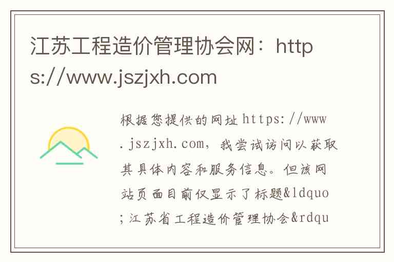 根据您提供的网址 https://www.jszjxh.com,我尝试访问以获取其具体内容和服务信息。但该网站页面目前仅显示了标题“江苏省工程造价管理协会”,没有提供任何具体的栏目介绍、详细地址或联系方式。