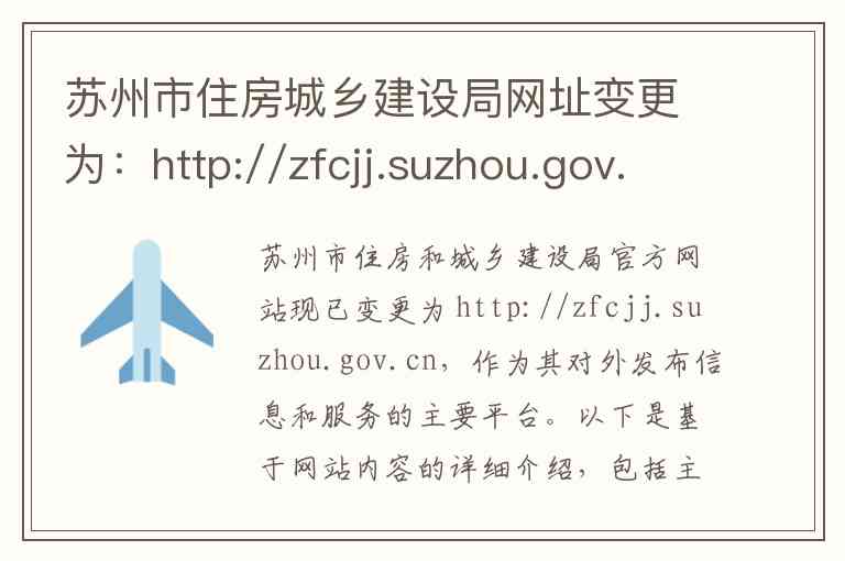 苏州市住房和城乡建设局官方网站现已变更为 http://zfcjj.suzhou.gov.cn,作为其对外发布信息和服务的主要平台。以下是基于网站内容的详细介绍,包括主要服务板块及联系途径。