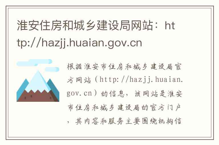 根据淮安市住房和城乡建设局官方网站(http://hazjj.huaian.gov.cn)的信息,该网站是淮安市住房和城乡建设局的官方门户,其内容和服务主要围绕机构信息公开、政务服务和互动交流展开。