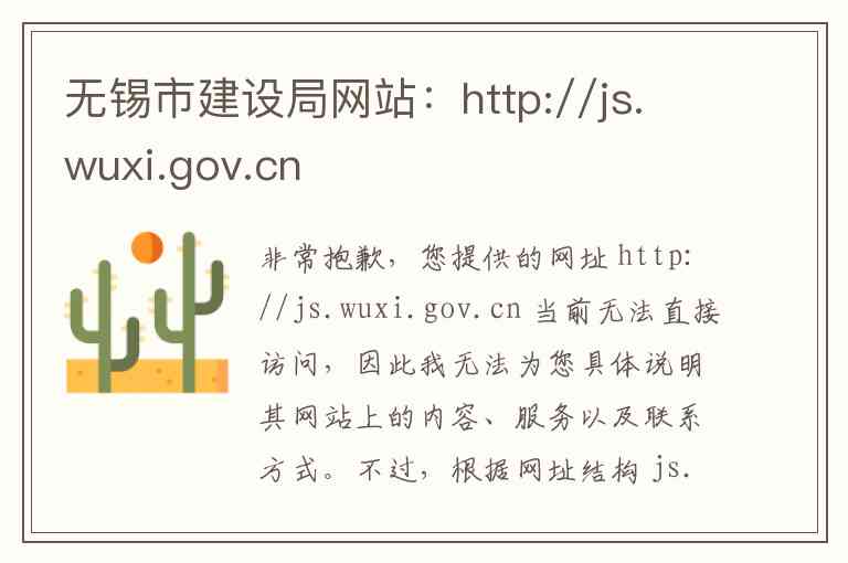 非常抱歉,您提供的网址 http://js.wuxi.gov.cn 当前无法直接访问,因此我无法为您具体说明其网站上的内容、服务以及联系方式。