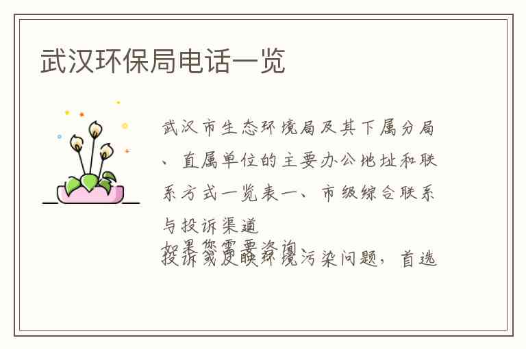 武汉市生态环境局及其下属分局、直属单位的主要办公地址和联系方式一览表