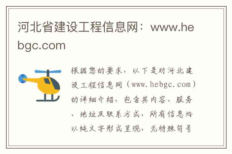 根据您的要求,以下是对河北建设工程信息网(www.hebgc.com)的详细介绍,包含其内容、服务、地址及联系方式,所有信息均以纯文字形式呈现,无特殊符号。