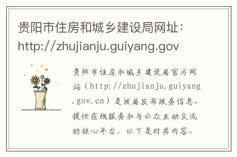 贵阳市住房和城乡建设局官方网站(http://zhujianju.guiyang.gov.cn)是该局发布政务信息、提供在线服务和与公众互动交流的核心平台。以下是对其内容、服务、地址和联系方式的详细说明。