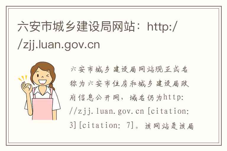 六安市城乡建设局网站现正式名称为六安市住房和城乡建设局政府信息公开网,域名仍为http://zjj.luan.gov.cn [citation:3][citation:7]。该网站是该局在互联网上发布政府信息、提供在线服务和开展互动交流的官方权威平台。