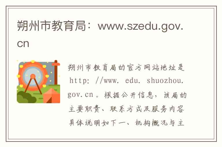 朔州市教育局的官方网站地址是 http://www.edu.shuozhou.gov.cn 。根据公开信息,该局的主要职责、联系方式及服务内容具体说明如下