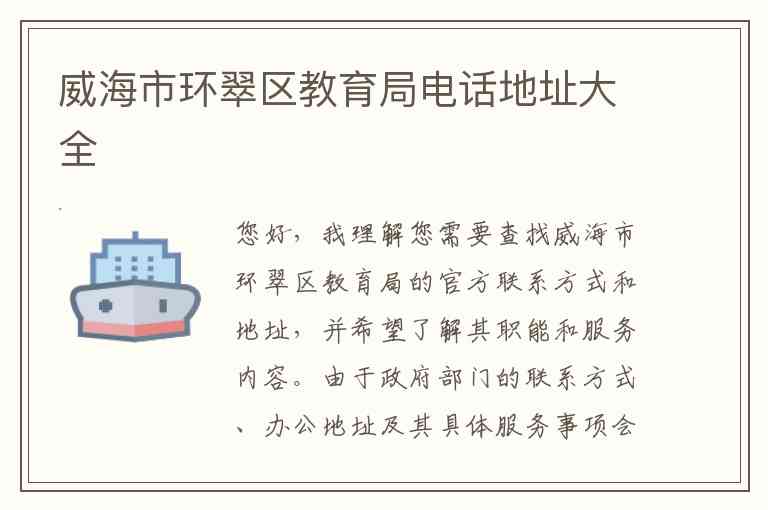 如果您想自行搜索,建议使用更精确的关键词组合,例如 “环翠区教育和体育局 官网” 或 “威海市环翠区 教育机构 联系方式”,这样更容易筛选出官方发布的信息。