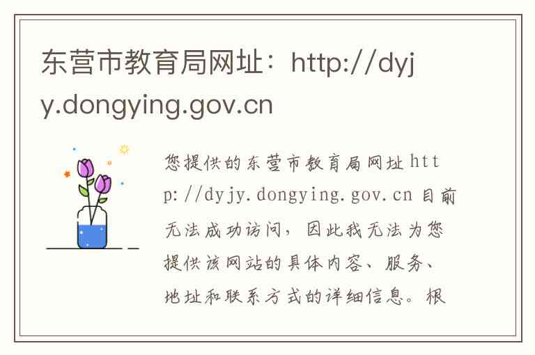 您提供的东营市教育局网址 http://dyjy.dongying.gov.cn 目前无法成功访问,因此我无法为您提供该网站的具体内容、服务、地址和联系方式的详细信息。