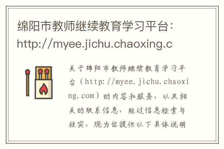 关于绵阳市教师继续教育学习平台(http://myee.jichu.chaoxing.com)的内容和服务,以及相关的联系信息,经过信息检索与核实,现为你提供以下具体说明。