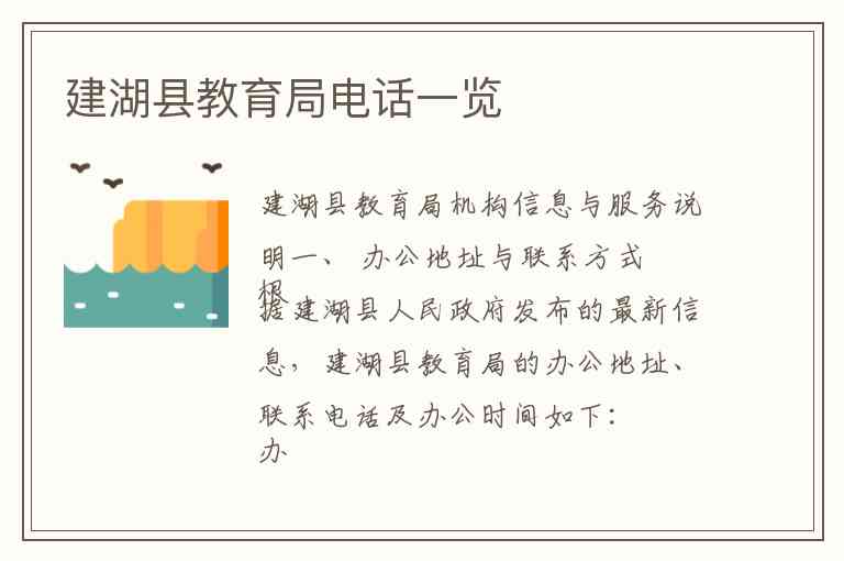 根据建湖县人民政府发布的最新信息,建湖县教育局的办公地址、联系电话及办公时间如下: