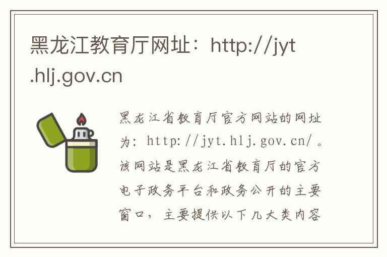 黑龙江省教育厅官方网站的网址为:http://jyt.hlj.gov.cn/ 。