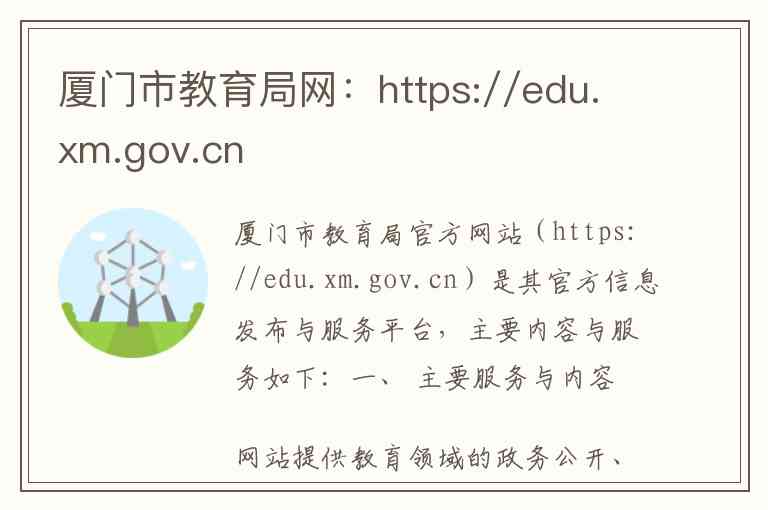 厦门市教育局官方网站(https://edu.xm.gov.cn)是其官方信息发布与服务平台,主要内容与服务如下: