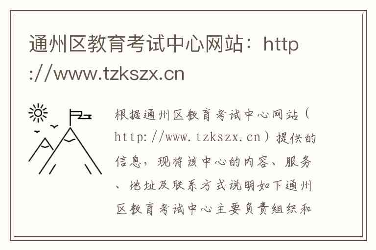 根据通州区教育考试中心网站(http://www.tzkszx.cn)提供的信息,现将该中心的内容、服务、地址及联系方式说明如下