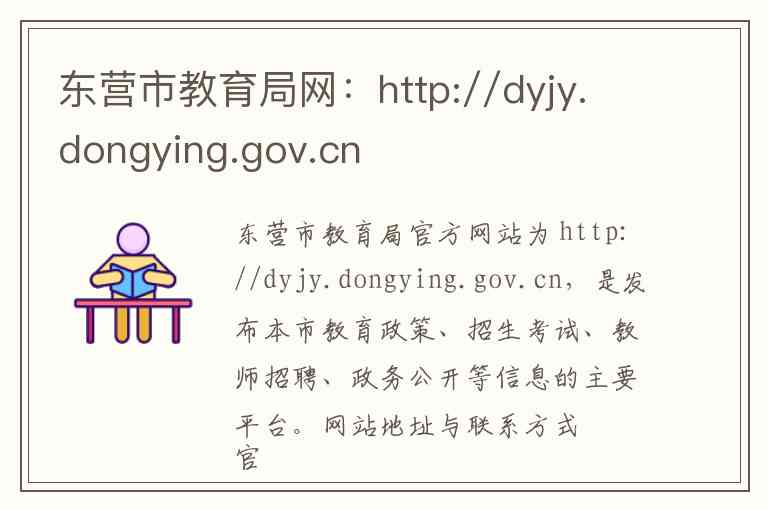 东营市教育局官方网站为 http://dyjy.dongying.gov.cn,是发布本市教育政策、招生考试、教师招聘、政务公开等信息的主要平台。