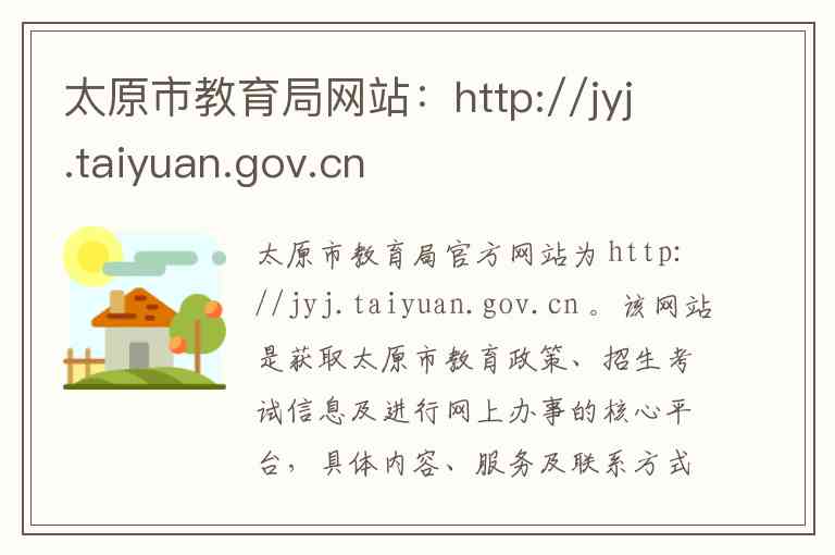 太原市教育局官方网站为 http://jyj.taiyuan.gov.cn 。该网站是获取太原市教育政策、招生考试信息及进行网上办事的核心平台,具体内容、服务及联系方式如下: