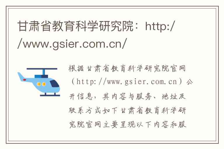 根据甘肃省教育科学研究院官网(http://www.gsier.com.cn)公开信息,其内容与服务、地址及联系方式如下