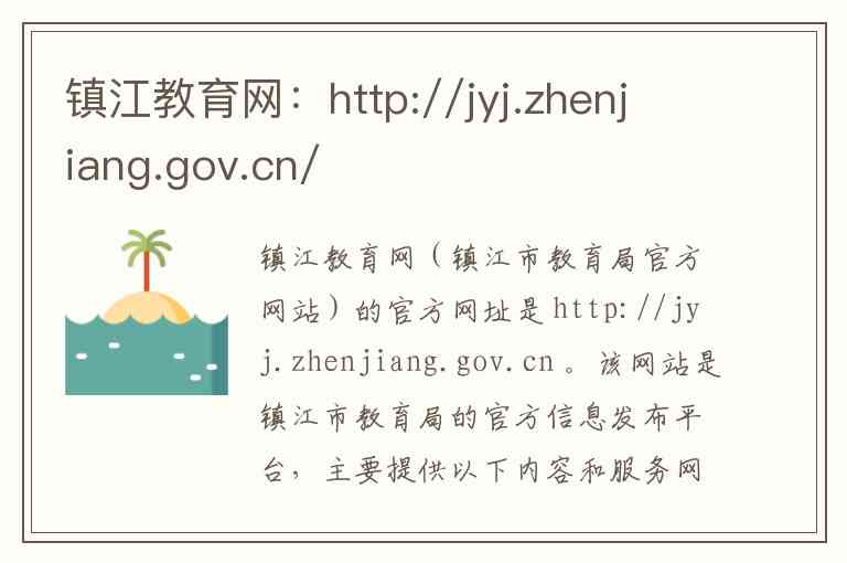 镇江教育网(镇江市教育局官方网站)的官方网址是 http://jyj.zhenjiang.gov.cn 。该网站是镇江市教育局的官方信息发布平台,主要提供以下内容和服务