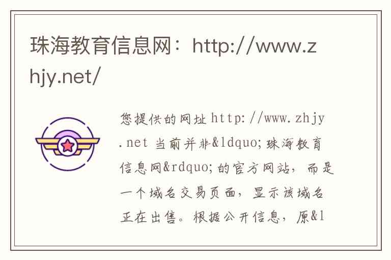 您提供的网址 http://www.zhjy.net 当前并非“珠海教育信息网”的官方网站,而是一个域名交易页面,显示该域名正在出售。