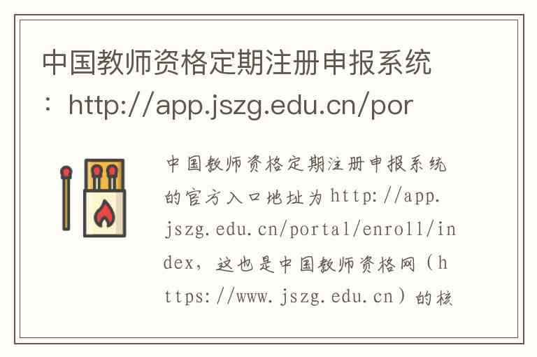 中国教师资格定期注册申报系统的官方入口地址为 http://app.jszg.edu.cn/portal/enroll/index,这也是中国教师资格网(https://www.jszg.edu.cn)的核心功能之一。
