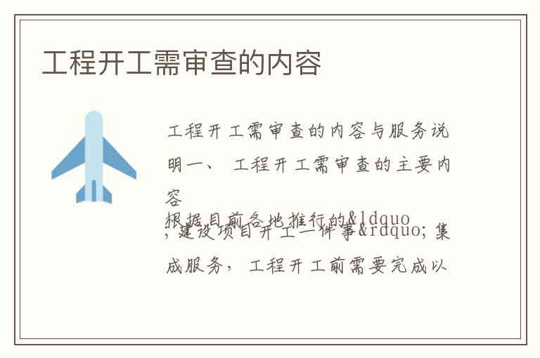 根据目前各地推行的“建设项目开工一件事”集成服务,工程开工前需要完成以下核心内容的审查与许可,通常由住房和城乡建设主管部门牵头,并联涉及规划、水务、城管、人防等多个部门。