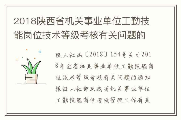 根据人社部及我省机关事业单位工勤技能岗位考核管理工作有关政策规定,现将2018年全省机关事业单位工勤技能岗位技术等级考核有关问题通知如下