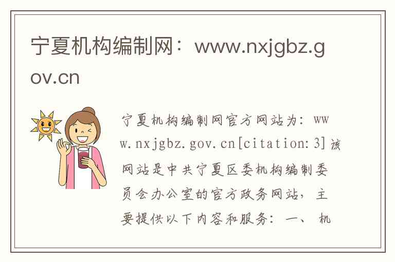 宁夏机构编制网官方网站为:www.nxjgbz.gov.cn[citation:3]
