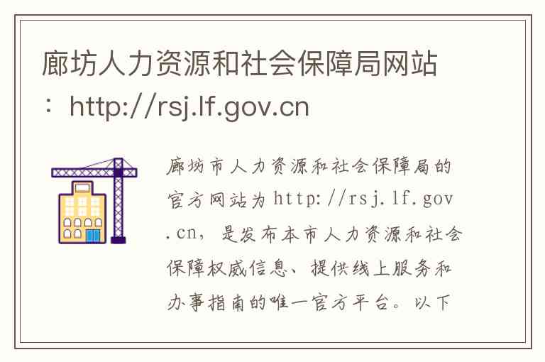 廊坊市人力资源和社会保障局的官方网站为 http://rsj.lf.gov.cn,是发布本市人力资源和社会保障权威信息、提供线上服务和办事指南的唯一官方平台。以下根据网站内容及政府公开信息,对其主要功能、服务、地址及联系方式进行详细说明。