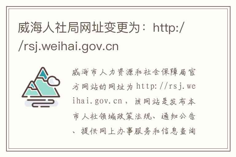 威海市人力资源和社会保障局官方网站的网址为 http://rsj.weihai.gov.cn ,该网站是发布本市人社领域政策法规、通知公告、提供网上办事服务和信息查询的官方平台。