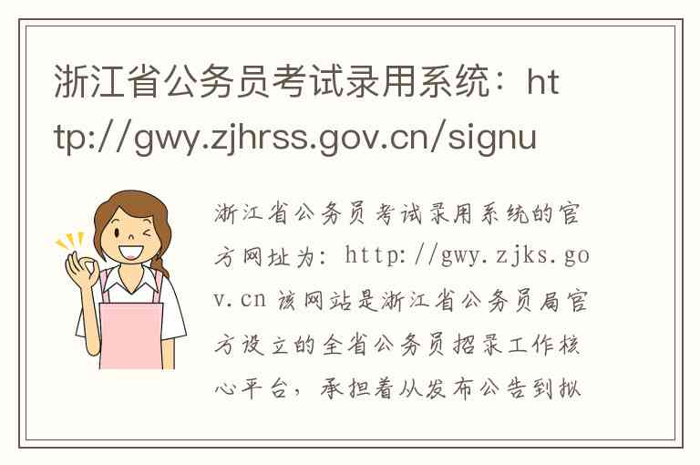 浙江省公务员考试录用系统的官方网址为:http://gwy.zjks.gov.cn