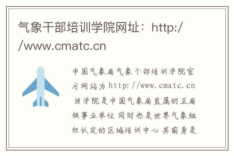 中国气象局气象干部培训学院官方网站为 http://www.cmatc.cn 该学院是中国气象局直属的正局级事业单位 同时也是世界气象组织认定的区域培训中心 其前身是1955年创建的北京气象学院 2011年正式更为现名