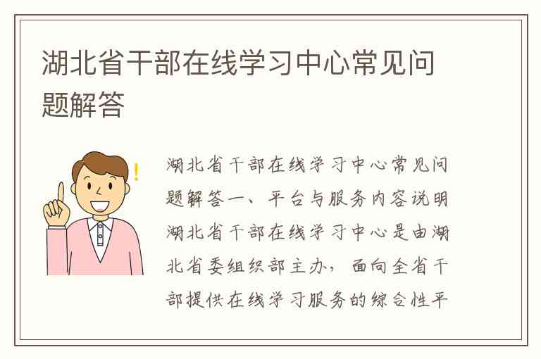 湖北省干部在线学习中心是由湖北省委组织部主办,面向全省干部提供在线学习服务的综合性平台,于2010年8月建成开通。该平台旨在发挥网络培训覆盖面广、共享性好、灵活性强、成本低廉的优势,为广大干部提供集在线学习、考试测评、学习管理、资料查询、互动交流于一体的综合性学习服务。