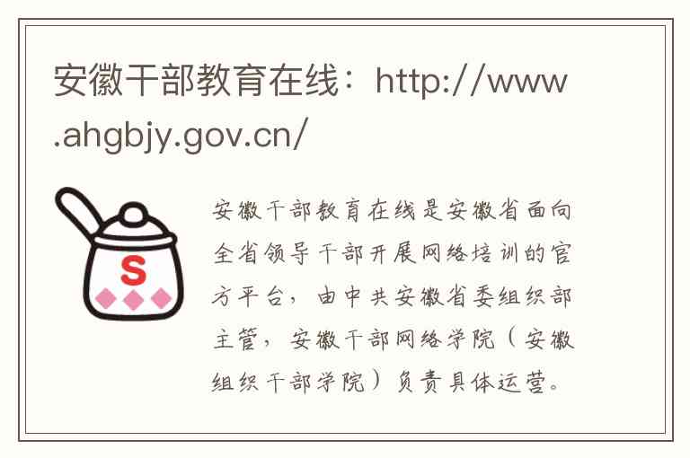 安徽干部教育在线是安徽省面向全省领导干部开展网络培训的官方平台,由中共安徽省委组织部主管,安徽干部网络学院(安徽组织干部学院)负责具体运营。以下是对其内容、服务及联系方式的详细说明。
