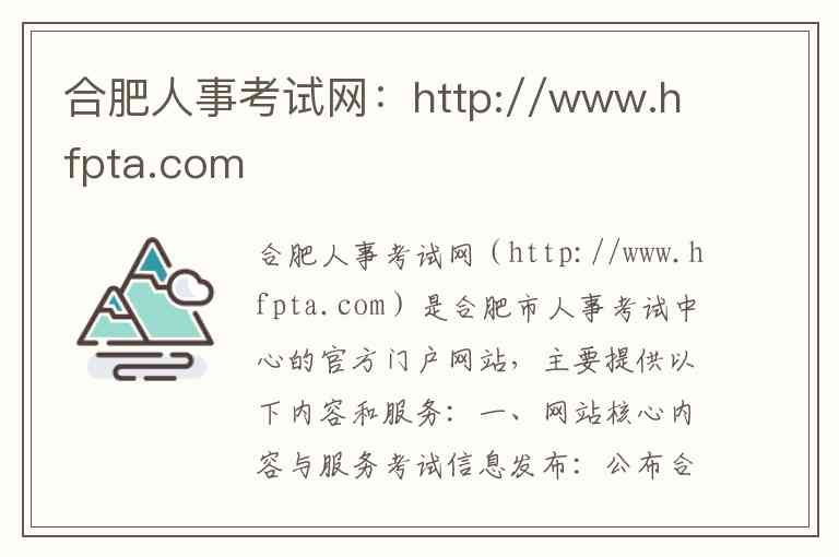 合肥人事考试网(http://www.hfpta.com)是合肥市人事考试中心的官方门户网站,主要提供以下内容和服务: