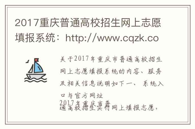 关于2017年重庆市普通高校招生网上志愿填报系统的内容、服务及相关信息说明如下