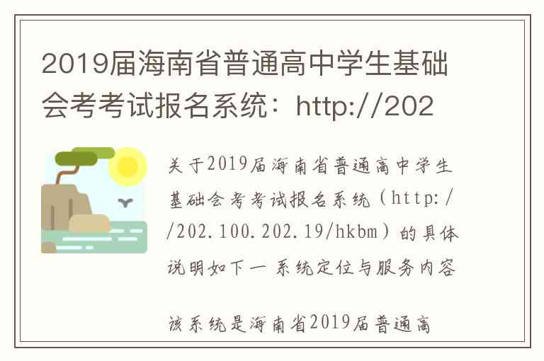 关于2019届海南省普通高中学生基础会考考试报名系统(http://202.100.202.19/hkbm)的具体说明如下