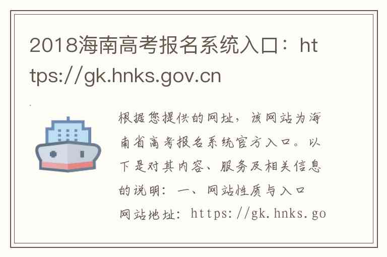 根据您提供的网址,该网站为海南省高考报名系统官方入口。以下是对其内容、服务及相关信息的说明: