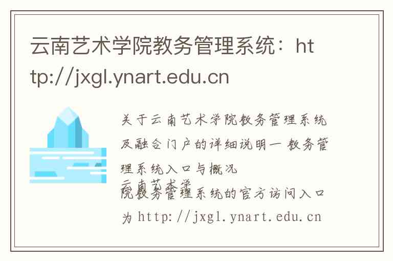 关于云南艺术学院教务管理系统及融合门户的详细说明