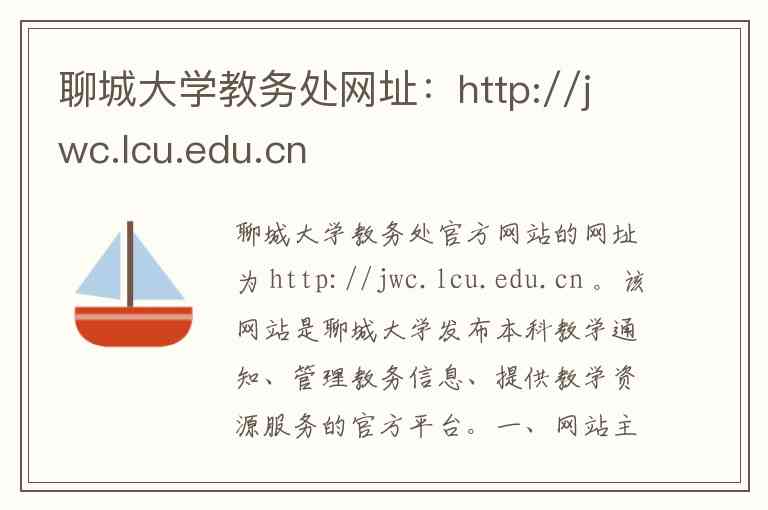 聊城大学教务处官方网站的网址为 http://jwc.lcu.edu.cn 。该网站是聊城大学发布本科教学通知、管理教务信息、提供教学资源服务的官方平台。