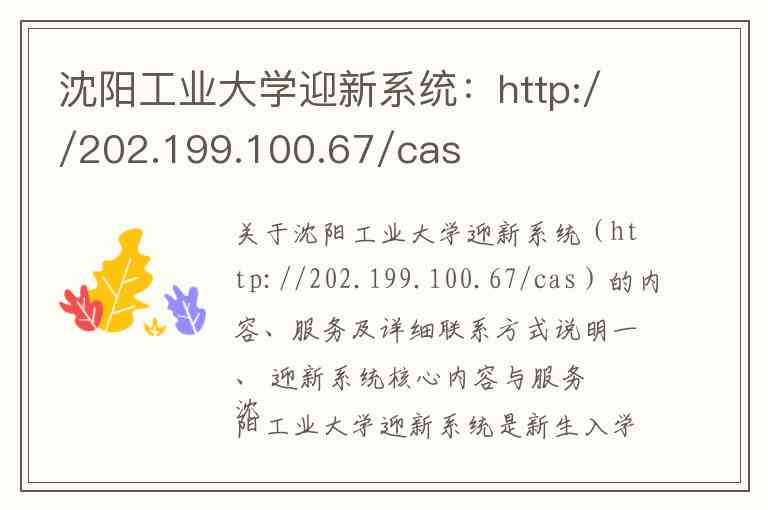 关于沈阳工业大学迎新系统(http://202.199.100.67/cas)的内容、服务及详细联系方式说明