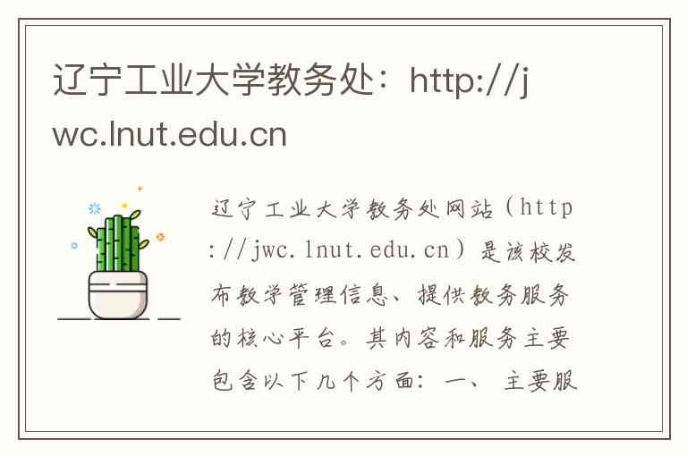 辽宁工业大学教务处网站(http://jwc.lnut.edu.cn)是该校发布教学管理信息、提供教务服务的核心平台。其内容和服务主要包含以下几个方面: