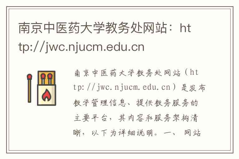 南京中医药大学教务处网站(http://jwc.njucm.edu.cn)是发布教学管理信息、提供教务服务的主要平台,其内容和服务架构清晰,以下为详细说明。