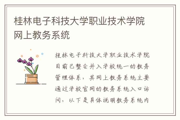 桂林电子科技大学职业技术学院目前已整合并入学校统一的教务管理体系,其网上教务系统主要通过学校官网的教务系统入口访问,以下是具体说明