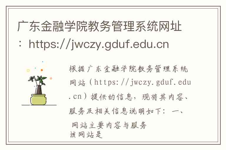 根据广东金融学院教务管理系统网站(https://jwczy.gduf.edu.cn)提供的信息,现将其内容、服务及相关信息说明如下:
