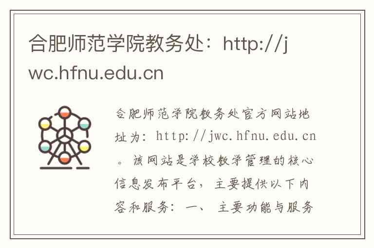 合肥师范学院教务处官方网站地址为:http://jwc.hfnu.edu.cn 。该网站是学校教学管理的核心信息发布平台,主要提供以下内容和服务: