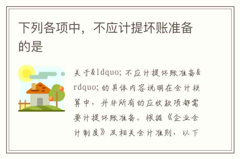 在会计核算中,并非所有的应收款项都需要计提坏账准备。根据《企业会计制度》及相关会计准则,以下项目或情形通常不应计提坏账准备,或者需要特殊处理: