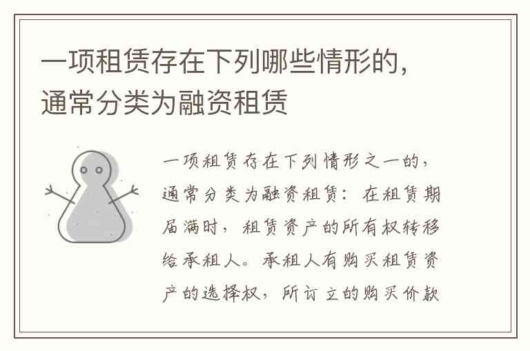 一项租赁存在下列情形之一的,通常分类为融资租赁: