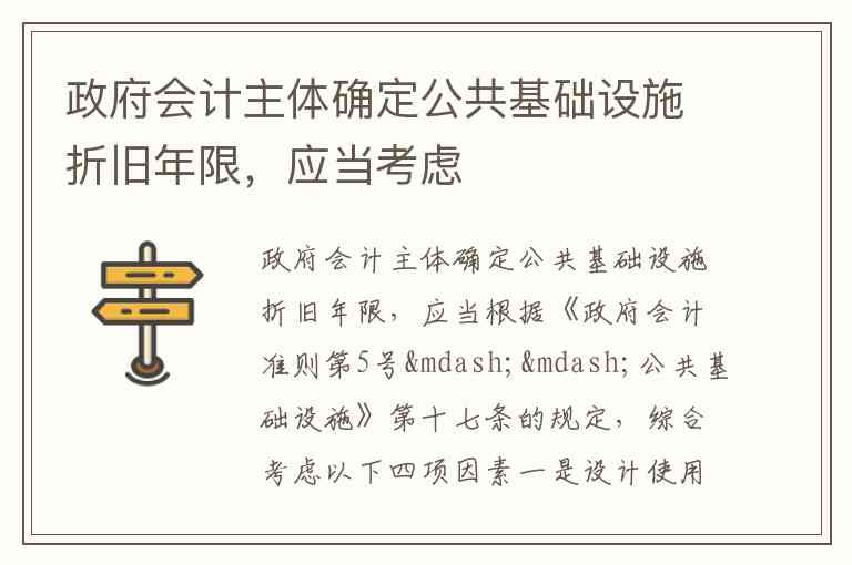 政府会计主体确定公共基础设施折旧年限,应当根据《政府会计准则第5号——公共基础设施》第十七条的规定,综合考虑以下四项因素