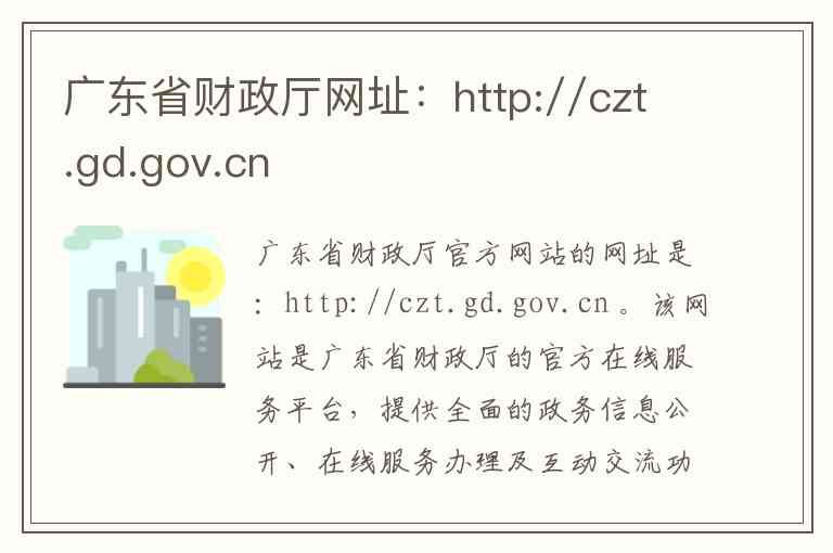 广东省财政厅官方网站的网址是:http://czt.gd.gov.cn 。该网站是广东省财政厅的官方在线服务平台,提供全面的政务信息公开、在线服务办理及互动交流功能 。其具体的内容和服务、地址及联系方式说明如下